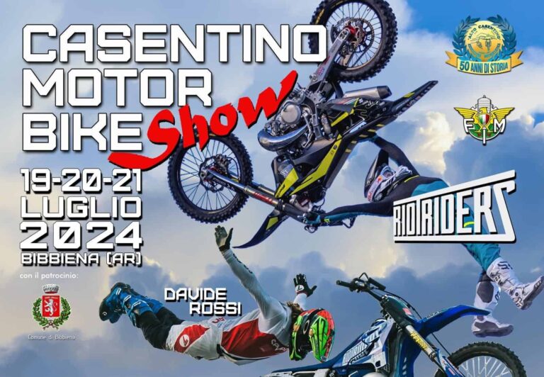Il 19, 20, 21 luglio 2024 Bibbiena – nelle location di Piazza Resistenza e via Garibaldi – ospiterà una manifestazione nazionale organizzata e promossa dall’Associazione Motociclistica Alto Casentino guidata da Luciano Fornaini e il patrocinio e collaborazione del Comune di Bibbiena, la Federazione Motociclistica Italiana e la Vespa Club Casentino.