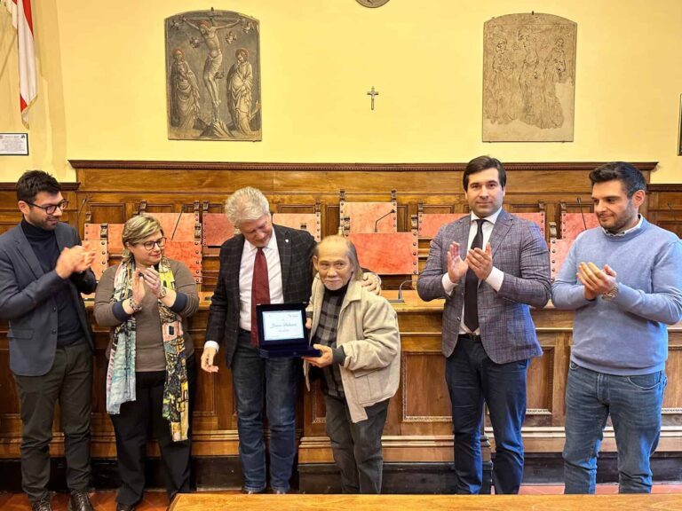 Quarantacinque anni in dialisi. Da quando, ragazzino, gli è stata diagnosticata la necessità della dialisi, la vita di Bruno Palmieri è stata scandita da tre appuntamenti settimanali con l’ospedale. Un percorso faticoso che però non ha frenato Bruno che ha riempito la sua vita di impegni e di amici. Ieri, su iniziativa del consigliere comunale Federico Rossi, il sindaco Alessandro Ghinelli e il vice sindaco Lucia Tanti, insieme agli assessori Alessandro Casi e Federico Scapecchi, al presidente del consiglio comunale Luca Stella, alla vice presidente Carla Borri e allo stesso consigliere, hanno consegnato a Bruno, per riconoscerne la forza e la tenacia, una targa a ricordo di questo lungo percorso segnato da oltre 7.000 dialisi. Presenti alla cerimonia tenutasi a Palazzo Cavallo anche il direttore di nefrologia e dialisi Paolo Conti insieme agli infermieri e OSS del reparto, oltre agli amici di sempre.