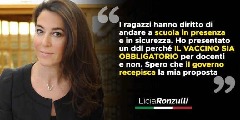 A sua firma inoltre il DDL depositato al Senato sull’obbligo per personale scolastico e sospensione in caso di inadempienza.