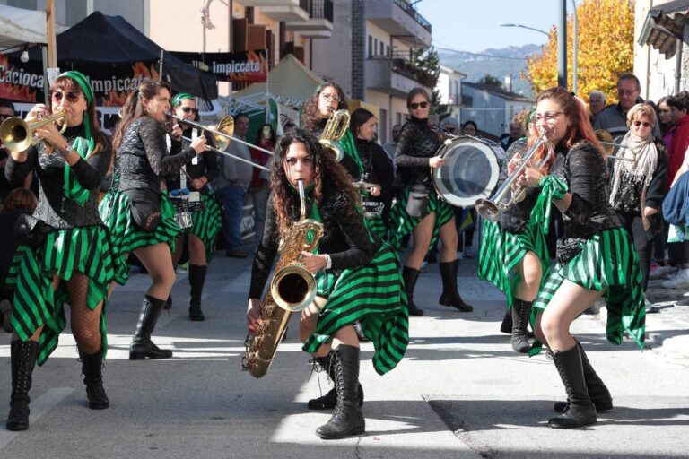 Le giovani musiciste, che strizzano l’occhio al buslesque, indossano corsetti e gonne voluminose, ballano, suonano e giocano con il pubblico con grinta ed eleganza. Un mix di fiati e percussioni per un concerto itinerante, che mira a coinvolgere grandi e piccini.