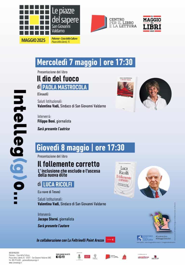 Si apre con due appuntamenti di grande rilievo il Maggio dei Libri 2025 a San Giovanni Valdarno. Mercoledì 7 e giovedì 8 maggio, sempre alle 17,30 a Palomar, Casa della Cultura, due tra le voci più autorevoli del panorama culturale italiano, Paola Mastrocola e Luca Ricolfi, saranno protagonisti di due incontri dedicati alla presentazione dei loro ultimi libri: “Il dio del fuoco” (Einaudi) e “Il follemente corretto. L’inclusione che esclude e l’ascesa della nuova élite” (La nave di Teseo).