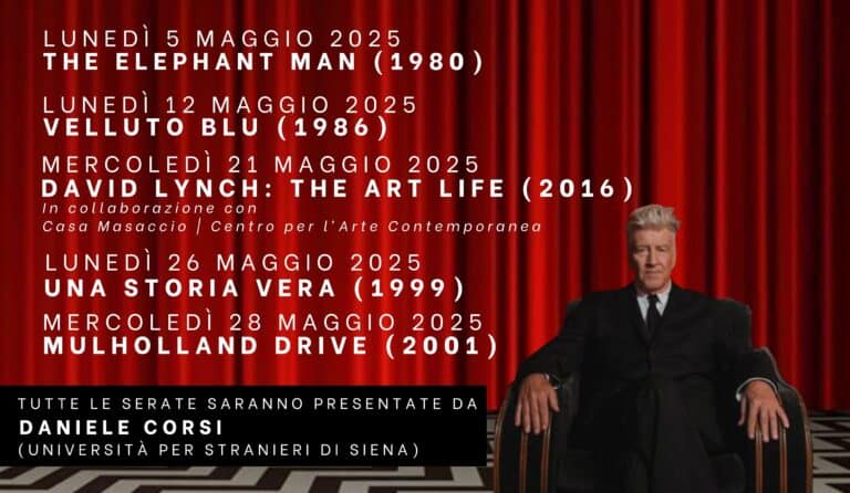 Ogni film sarà preceduto da una breve introduzione a cura di Daniele Corsi, docente all’Università per Stranieri di Siena, che guiderà il pubblico alla scoperta dell’universo lynchiano.