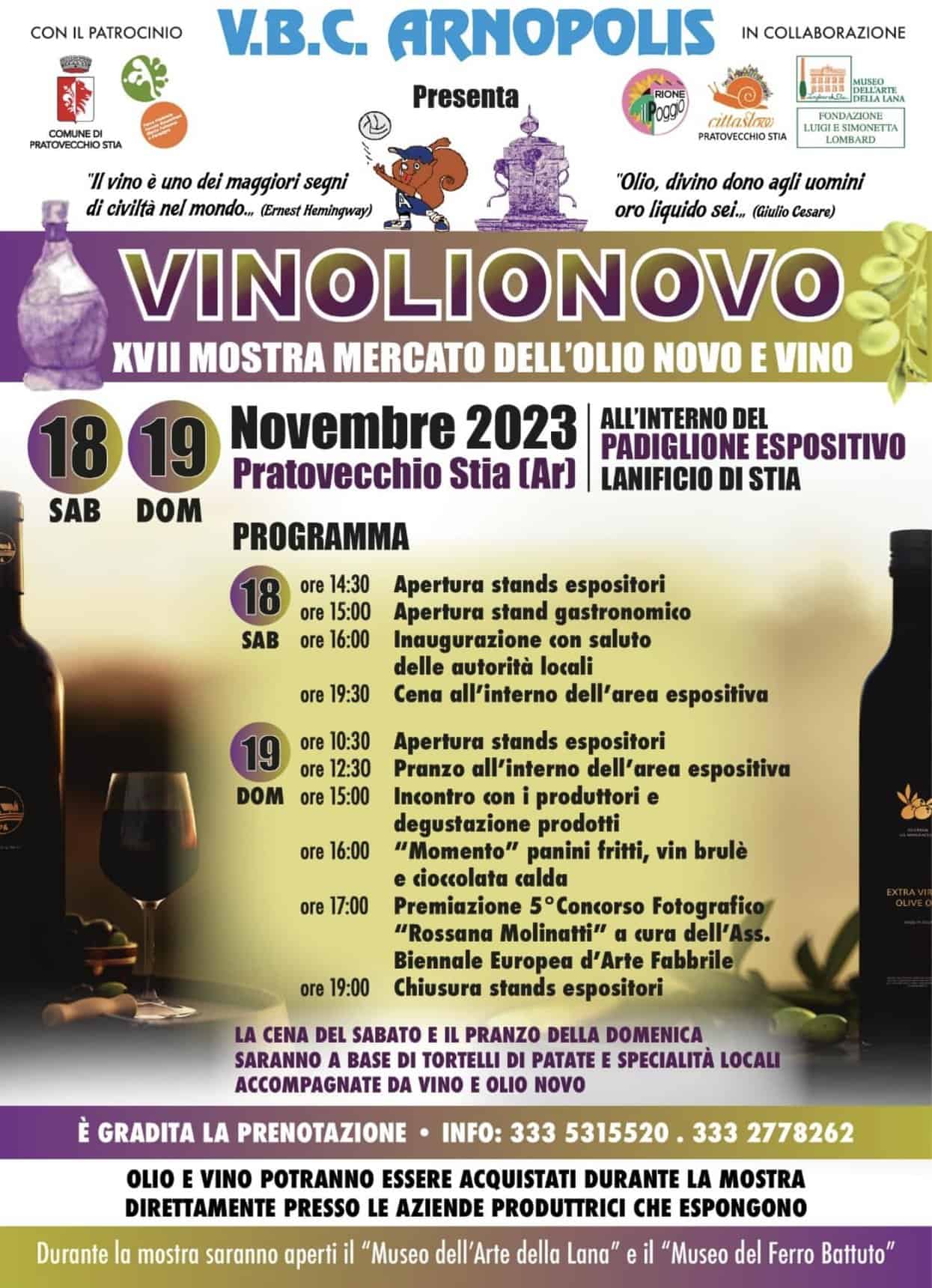 Tutto pronto per l’inaugurazione della 17esima edizione di Vinolionovo, la mostra mercato organizzata dall’associazione sportiva Vbc Arnopolis che vede come protagoniste le aziende agricole del territorio casentinese con degustazioni e vendita dei prodotti tipici: olio, vino ma anche molto altro.