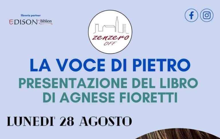 Tutta la veritร del difficile percorso di una famiglia che non si illude, ma nemmeno si arrende allo spettro autistico, nelle parole di una madre che ha scelto di diventare la voce del suo bambino, trovando la forza di condividere questa esperienza di genitorialitร . E’ quello che racconta il libro diย Agnese Fioretti โLa voce di Pietroโย (Giunti), incontro che chiude l’intensa programmazione di Zenzero OFF, ilย โfuori programmaโ di appuntamenti-evento parte del progetto culturale Zenzero promosso da ORA Officina Rilancio Arezzo in collaborazione con la libreria Edison by Biblion.