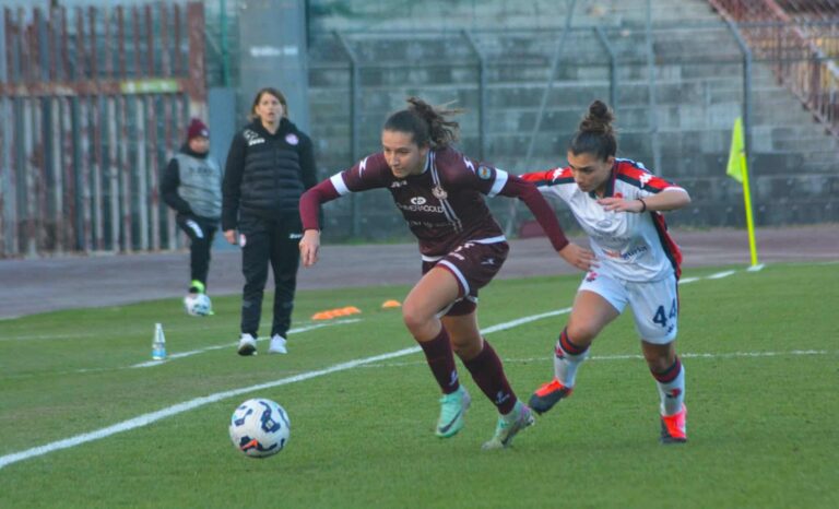11’ Martino dalla bandierina la mette in mezzo, trovando quasi la prodezza della rete. Forcinella riesce a respingere e la palla rimane nell’area delle ospiti rimbalzando tra le varie maglie amaranto, ma nessuna riesce a trovare spazio per il tiro.