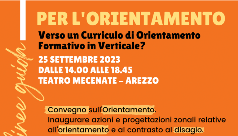 Sono ancora aperte le iscrizioni per il convegno “Le nuove linee guida per l’orientamento. Verso un curricolo di orientamento formativo verticale?” che si terrà ad Arezzo lunedì 25 settembre, dalle 14 alle 18.45 presso il Teatro Mecenate, Viale Dante 1, organizzato nel quadro delle azioni del Piano Educativo di Zona (Conferenza Educativa zona Aretina) dall’agenzia formativa Pratika, con il sostegno della cooperativa Coordinate, per conto della Conferenza educativa zonale aretina. Voci plurali del settore daranno vita a un seminario formativo rivolto a dirigenti scolastici, insegnanti e studenti sulle nuove linee guida emanate dal governo a dicembre 2022 in materia di orientamento, il processo che “facilita la conoscenza di sé, del contesto formativo, occupazionale, sociale, culturale ed economico e delle strategie per agire in tali realtà, al fine di maturare e sviluppare le competenze necessarie per (…) immaginare ed elaborare un progetto di vita” (definizione Linee guida Ministero dell’Istruzione e del Merito MIM). L’evento è di interesse anche per tutte le famiglie.