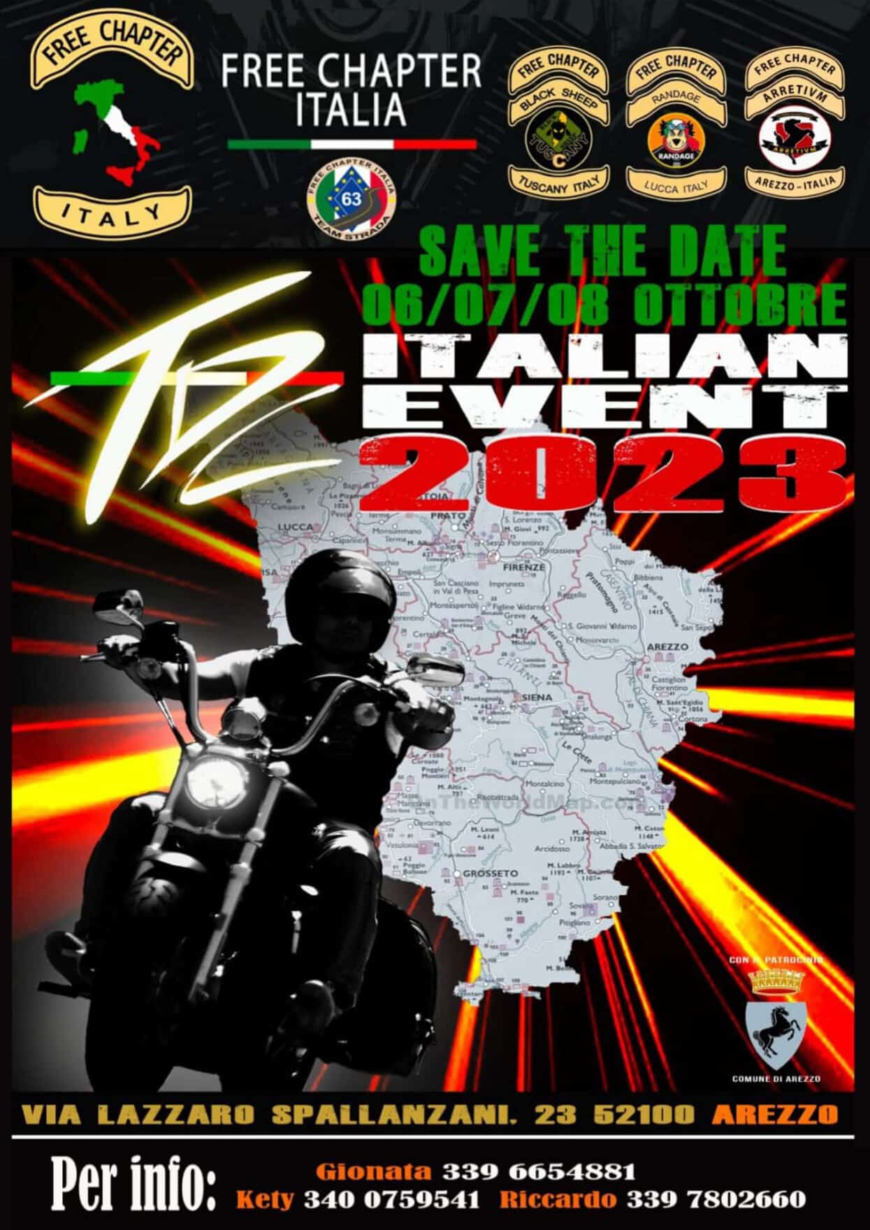 Grazie alla collaborazione e al patrocinio concesso del Comune di Arezzo e della fondazione Arezzo in tour ed Arezzo Fiere e Congressi anche questo anno centinaia di appassionati per la precisione 700 del marchio Harley Davidson facenti parte dei Free chapter Italia si ritroveranno ad Arezzo nei giorni 6/7/8 ottobre per Italian Event 2023 presso il centro Fiere di Arezzo.