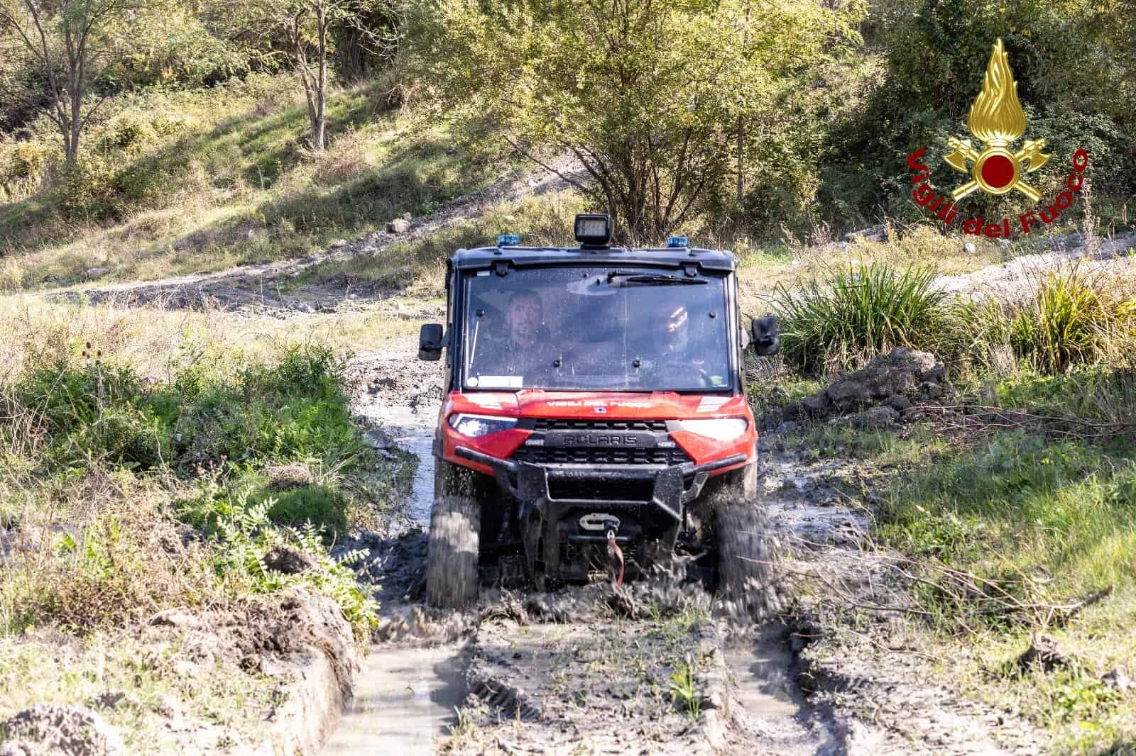 Durante la prima giornata i piloti hanno ricevuto una formazione specifica sull’uso del quad, con prove su percorsi sterrati e non preparati, affrontando salite, discese, guadi e ostacoli, in un’area adibita ai corsi di guida off-road per il personale dei Vigili del Fuoco.