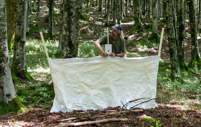 Le tele installate da Ghezzi nei diversi ambienti del Parco, dalle faggete d’alta quota alle abetine secolari, dai corsi d’acqua ai boschi umidi, sono rimaste esposte, da luglio a settembre 2025, agli effetti del tempo e agli agenti naturali.
