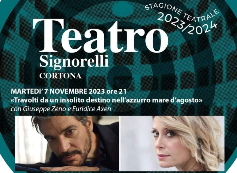 Dopo il tutto esaurito con Guanciale e Montanari, il Teatro Signorelli è pronto per fare il pieno con un’altra coppia. Martedì 7 novembre ore 21 ecco Giuseppe Zeno e Euridice Axen, saranno loro i protagonisti del classico di Lina Wertmüller «Travolti da un insolito destino in un azzurro mare d’agosto».