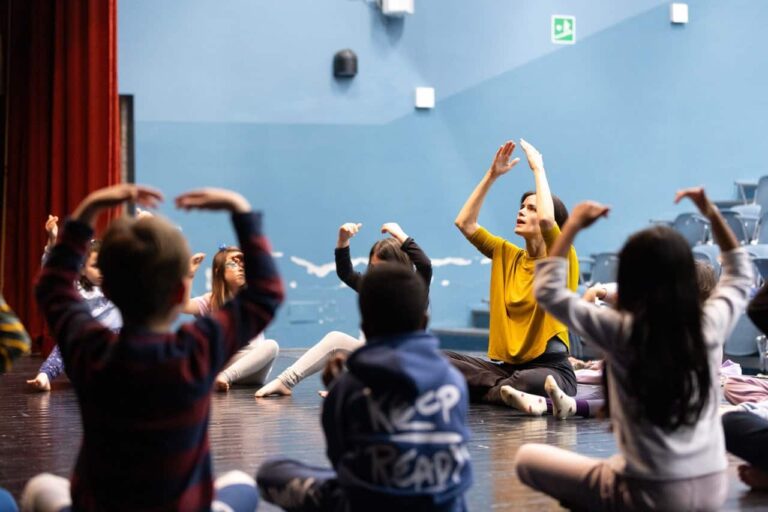 Nelle scorse settimane i bambini e le bambine della scuola primaria hanno avuto modo di incontrare Valentina Dal Mas, danzatrice e coreografa con uno sguardo rivolto al settore socio-educativo e ai contesti di cura. L’artista ha accompagnato i partecipanti in un percorso attraverso il movimento espressivo, pratiche immaginative e teatrali sul tema del mostro, figura centrale nel suo spettacolo Luna e il suo Mostrogiramondo presentato in replica matinée per le scuole al Teatro Mecenate.
