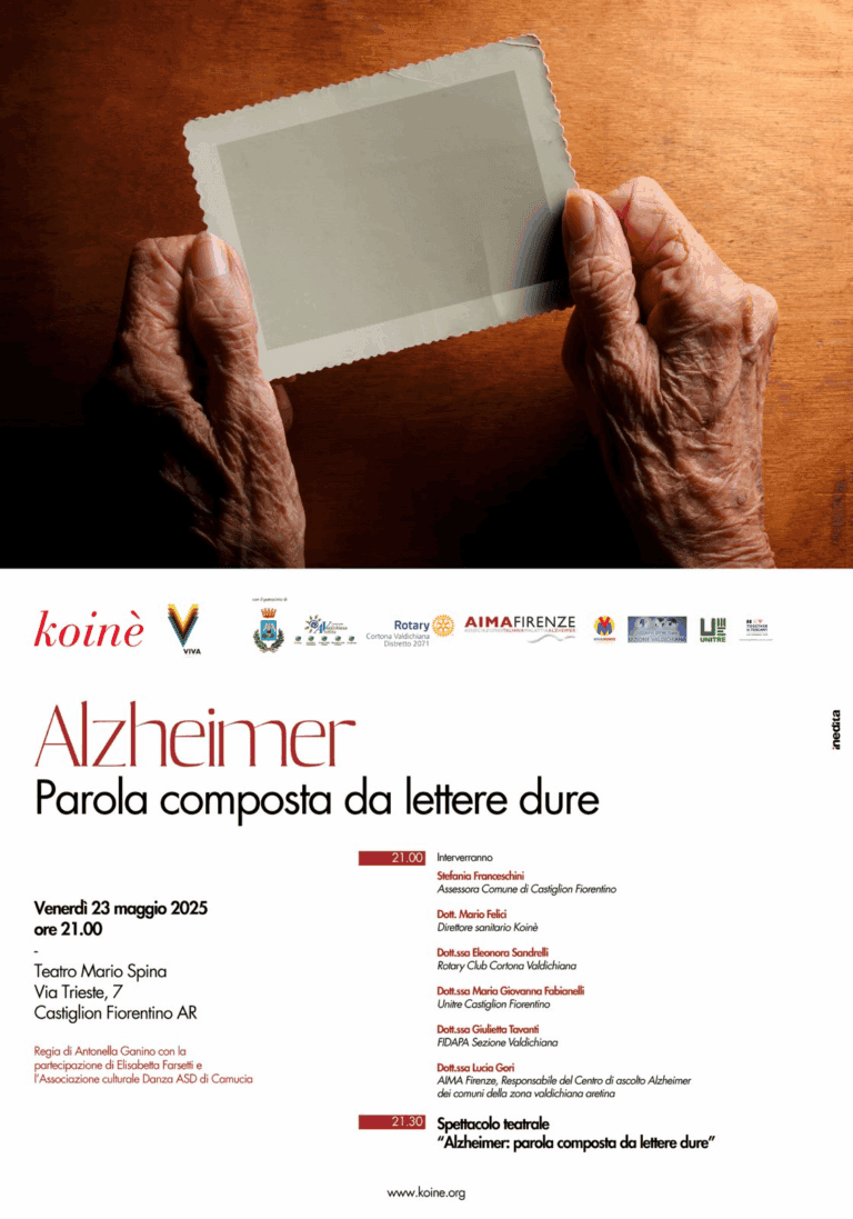 “Alzheimer: parola composta da lettere dure” per la regia di Antonella Ganino e la partecipazione di Elisabetta Farsetti della Associazione culturale Danza Ads di Camucia.