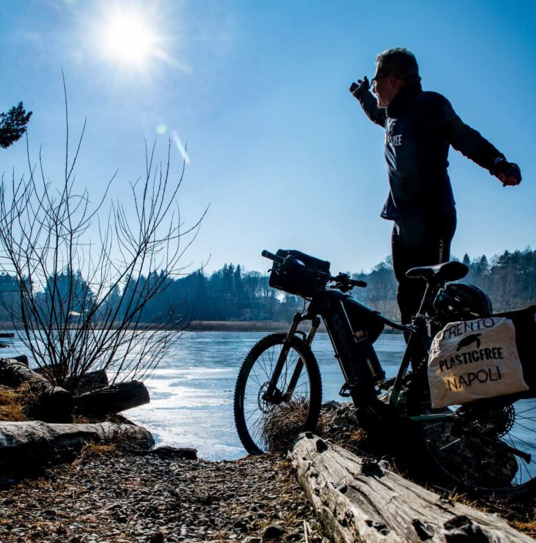 È partito oggi all’alba in bicicletta da Padergnone, frazione del Comune di Vallelaghi in Trentino, e punta a raggiungere in solitaria Napoli in tempo per la cerimonia di premiazione dei “Comuni Plastic Free” che si terrà sabato 8 marzo al Teatro Mediterraneo.