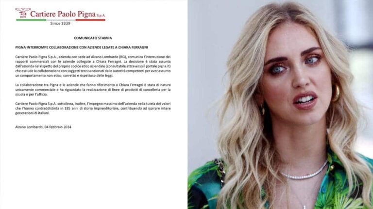 La Cartiere Paolo Pigna Spa ha con un comunicato stampa di qualche ora fa a deciso di interrompere i rapporti commerciali con le aziende collegate a Chiara Ferragni.