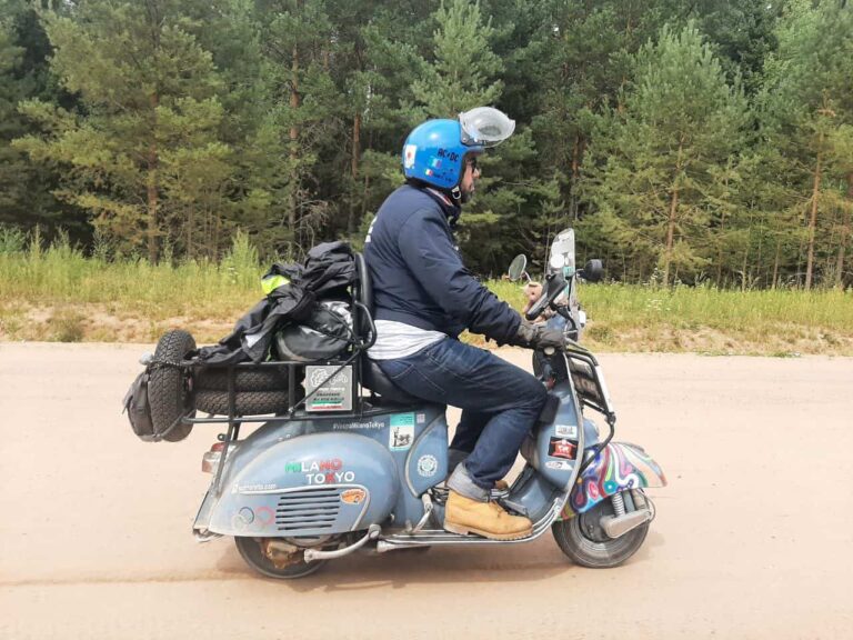 Ogni viaggio è una sfida ma lo è ancora di più quando ci si deve misurare con la pandemia di Covid-19, con i problemi della geopolitica e con il mito di Roberto Patrignani, che raggiunse il Giappone in Vespa, partendo da Milano, in occasione delle Olimpiadi del 1964.