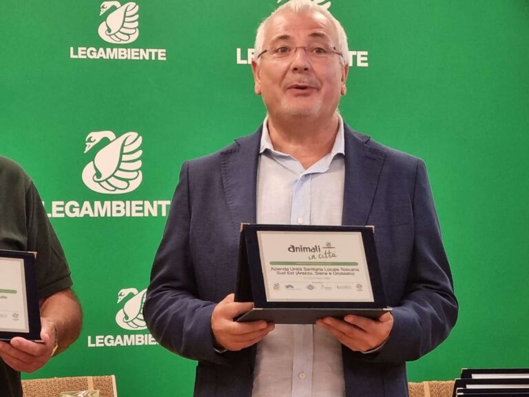 Premio nazionale “Animali in Città 2023” – Anche quest’anno Legambiente premia le realtà virtuose – tra Comuni e ASL – in prima linea nell’offerta di servizi e in azioni dedicate alla prevenzione. Alla ASL Toscana Sud Est il primo miglior risultato nella valutazione complessiva dei 25 indicatori considerati, tra tutte le medio-grandi Aziende, tra 500 e 1milione di abitanti, che hanno fornito dati. A ritirare il premio delegato dal Direttore Generale Antonio D’Urso il Direttore del dipartimento della prevenzione Giorgio Briganti.