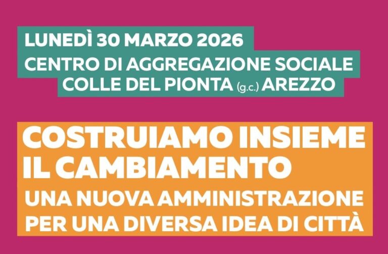 Iniziativa promossa dal Gruppo Consiliare di “Arezzo 2020 per cambiare a sinistra” per Lunedi 30 marzo alle 0re 18,30, insieme ad Alleanza Verdi e Sinistra di Arezzo al Centro Sociale “Colle del Pionta”