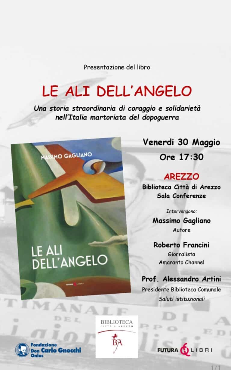Venerdì 30 maggio alle ore 17:30, presso la sala conferenze della Biblioteca Città di Arezzo, si terrà la presentazione del libro “Le Ali dell’Angelo”, scritto da Massimo Gagliano e pubblicato da Futura Libri.