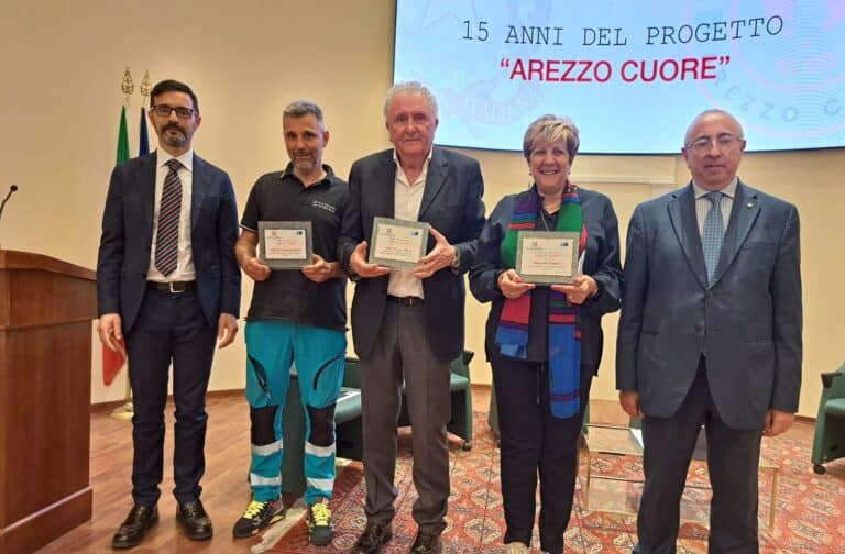 Arezzo cuore compie 15 anni. Era il 2010 quando il progetto venne istituito grazie alla sinergia fra Centrale Operativa 118 e Cardiologia ASL, Prefettura di Arezzo, Fondazione Cesalpino e Centro di Formazione Etrusco.