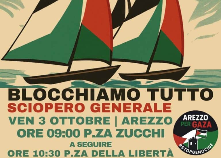 Arezzo Per Gaza sostiene e sarà presente a tutte le iniziative e manifestazioni previste per domani ricordando l’importanza della manifestazione nazionale di sabato 4 ottobre a Roma per il quale abbiamo organizzato tre pullman.