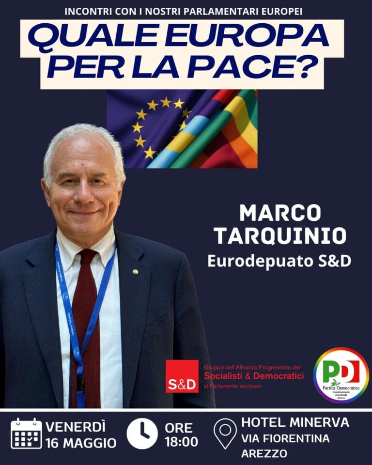 Il Partito Democratico di Arezzo organizza un importante momento di confronto e approfondimento aperto a tutta la cittadinanza: venerdì 16 maggio alle ore 18, presso l’Hotel Minerva di Arezzo, si terrà un incontro pubblico con Marco Tarquinio, parlamentare europeo e già direttore di “Avvenire”, da sempre voce autorevole sui temi della pace e della giustizia internazionale.