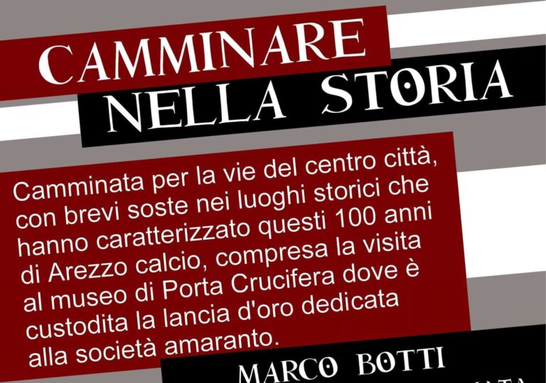 “Di certo passeremo dalla parte bassa di Corso Italia dove nacque la società nel 1923 – spiega lo stesso Botti – poi andremo a Campo di Marte dove si trovava il primo glorioso stadio Mancini. Ma non mancherà anche una tappa nel museo del quartiere di Porta Crucifera per ammirare da vicino la lancia d’oro dedicata ai 100 anni dell’Arezzo.”