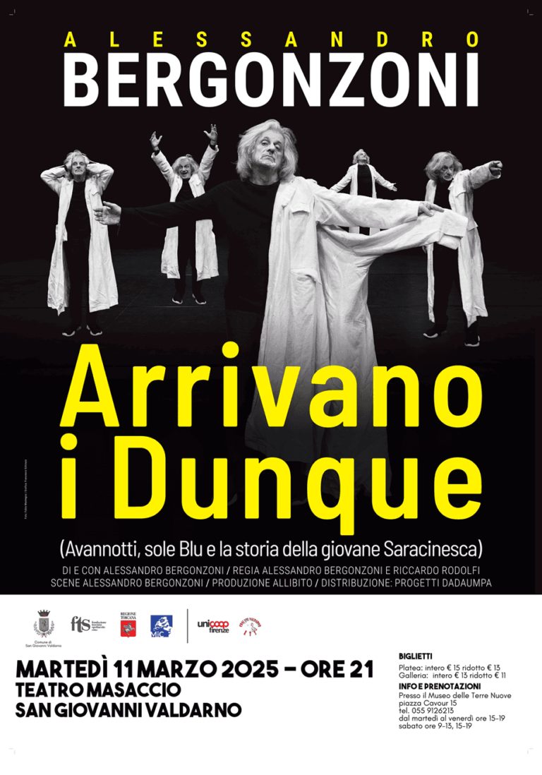 Dopo il tutto esaurito dello spettacolo di Federico Buffa Italia Mundial20 febbraio, il prossimo appuntamento della Stagione teatrale di San Giovanni Valdarno è in programma martedì 11 marzo con “Arrivano i Dunque.