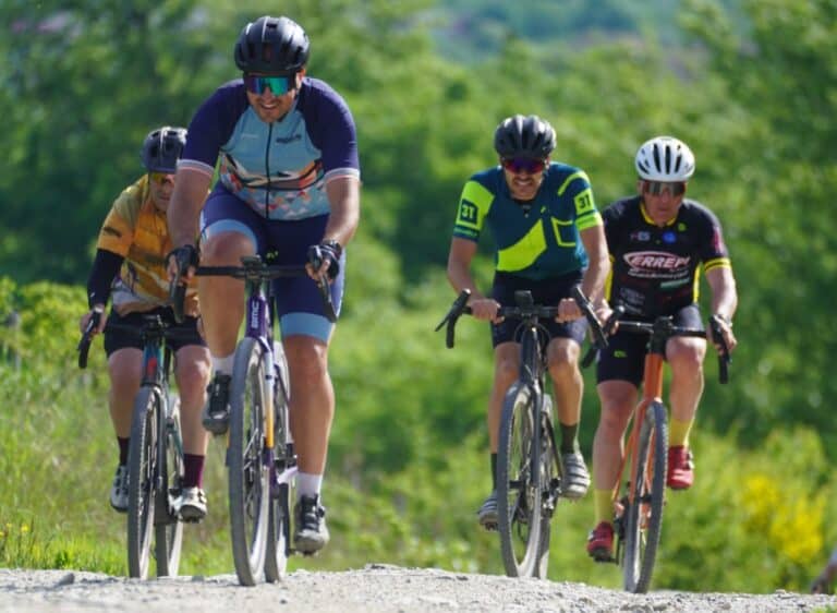 Un pizzico di agonismo in una giornata caratterizzata da divertimento, splendidi paesaggi, fatica su strade impegnative e affascinanti, condivisione della passione per la bicicletta, in questo caso gravel e MTB.
