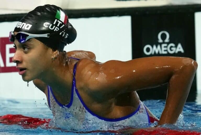 ROMA – Tanti i protagonisti nelle finali della terza giornata degli Assoluti Unipol in corso fino al 17 aprile allo Stadio del Nuoto di Riccione. A spiccare tra tutti però, è stata un’incredibile Sara Curtis, 18enne piemontese, che ha stravolto gli animi, prendendosi in un solo colpo nei 100 stile libero il pass iridato (tempo limite 53″8) e un record italiano che ha cancellato il 53″18 siglato dalla vincitrice di tutto Federica Pellegrini il 25 giugno 2016 quando fece esplodere lo Stadio del Nuoto di Roma durante il 53esimo trofeo Sette Colli.