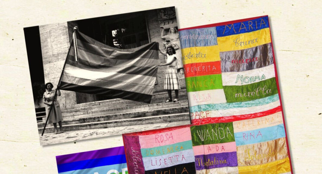 Un elemento di lungo periodo che ha visto le donne, prima e dopo quel passaggio storico, sempre fortemente impegnate a favore della pace. In quel periodo si sviluppò dal basso la pratica della realizzazione delle “Bandiere multicolori della pace”, di cui sopravvivono numerosi esemplari in archivi sindacali e di associazioni come l’Unione donne italiane. Si tratta di una pratica autonoma e parallela rispetto a quella delle bandiere della pace arcobaleno conosciute oggi. La realizzazione di queste bandiere era una delle peculiari forme dell’attivismo femminile, che travalicò la campagna pacifista facendole divenire un simbolo e uno strumento di resistenza e di rivendicazione delle istanze di emancipazione delle lavoratrici.