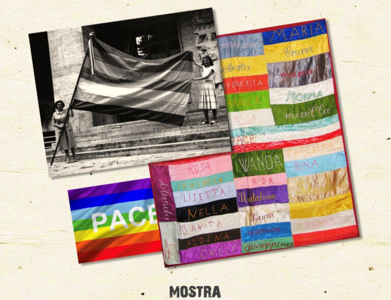 La mostra “Peace & Care” ripercorre la storia delle bandiere, dalla loro apparizione alla grammatica dei colori che usavano, soffermandosi sul loro uso nei diversi contesti – dall’associazionismo femminile alle pratiche di lotta sindacali – e sulla soggettività femminile che vi si trova espressa.