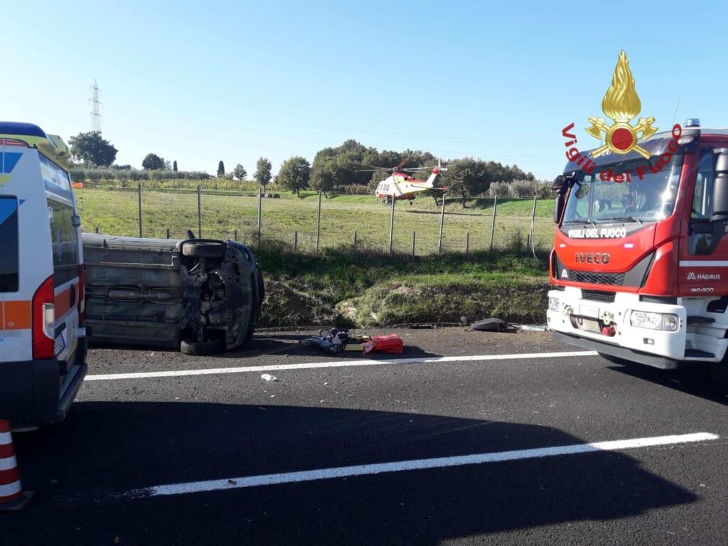 Il veicolo si รจ capovolto sulla carreggiata, causando il blocco temporaneo del traffico.