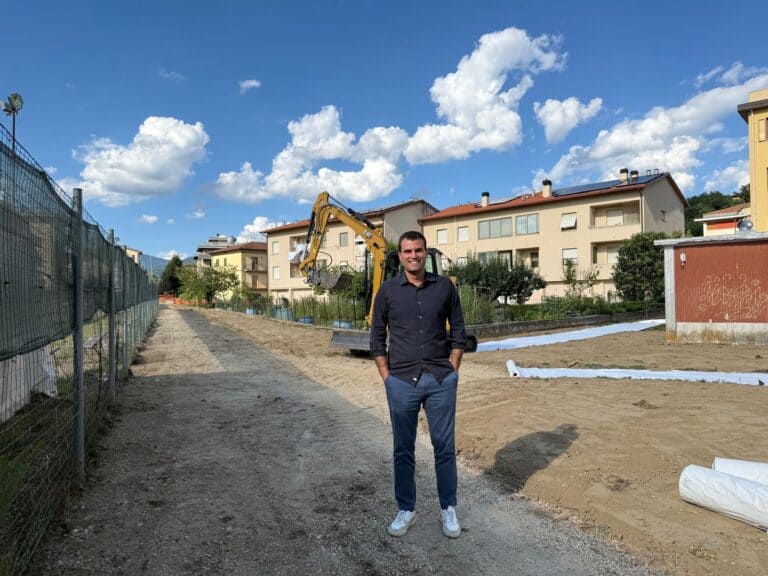 Abbiamo iniziato un nuovo cantiere a Bibbiena Stazione, una riqualificazione di qualità di un passaggio pedonale molto frequentato che è quello al campo sportivo Fratelli Brocchi, limitrofo alla tribuna che, prossimamente, diventerà anche ciclopista dell’Archiano, perché nelle vicinanze verrà realizzata, in collaborazione con l’Unione dei Comuni, la passerella sul torrente Archiano che collegherà le due ciclopiste ovvero quella dell’Archiano e quella dell’Arno”, spiega il Sindaco.