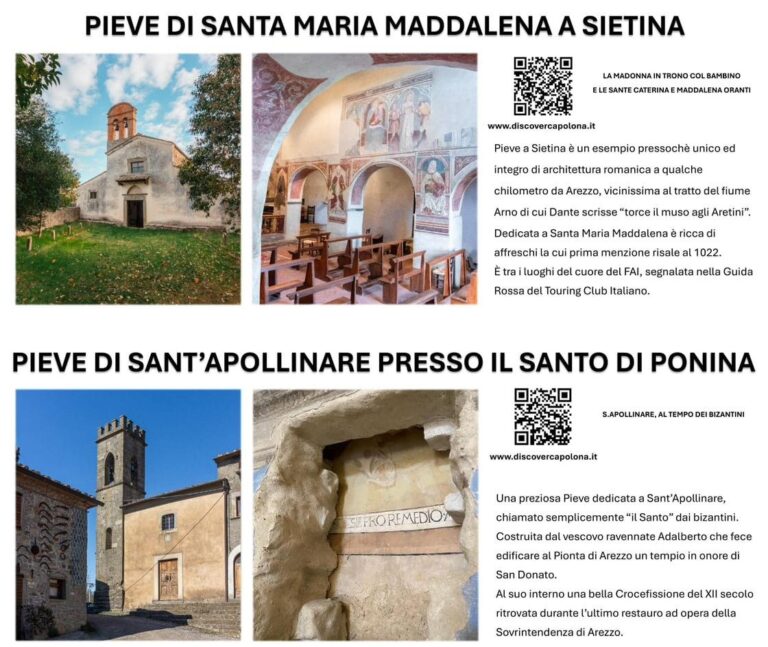 Con questo mese di marzo nel territorio di Capolona ripartono le aperture della Pieve di Sietina e di quella del Santo di Ponina e raddoppiano, infatti sarà possibile visitare le due Pievi in occasione della prima domenica della Fiera di Antiquariato ad Arezzo, sia la domenica mattina dalle ore 9 alle 12,30, sia nel sabato che la precede dalle ore 15 alle 18,30.