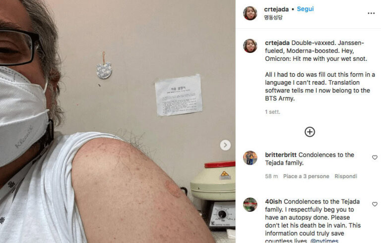 Il giorno prima aveva ricevuto la dose booster del vaccino Covid-19.