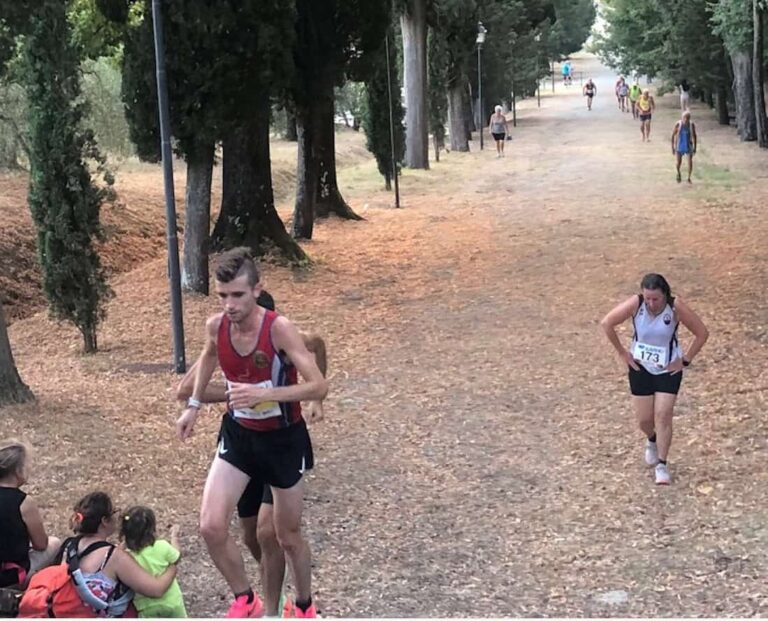 Nell’ultimo giro, la temperatura si abbassa leggermente grazie anche ad un aumento della ventilazione e Cassi ne approfitta per fare un allungo perentorio nel viale finale che lo porta al traguardo con il tempo di 25’40” un vantaggio su Bandini di quasi 15” mentre al 3° posto un ottimo GianLuca Notturni che nel finale supera i compagni di squadra Francesco Vannuccini e Alessandro Annetti mentre cede Graziani.