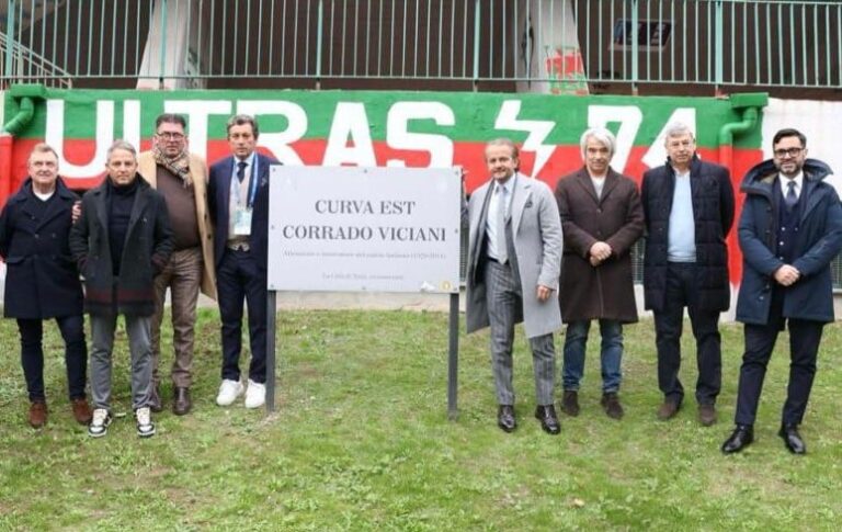 Ad accoglierli il presidente e il direttore operativo e gestionale della Ternana Calcio, rispettivamente Nicola Guida e Giuseppe D’Aniello, immortalati in una foto insieme alla delegazione castiglionese proprio sotto la curva est intitolata, nel 2014, al mister dei miracoli pochi giorni dopo la sua scomparsa. Il lungo applauso è scattato dopo l’annuncio da parte dello speaker della stadio Libero Liberati della presenza dei figli di Corrado, Enrico e Dario Viciani.