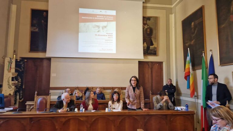 Si è svolta questa mattina nella Sala Consiliare del Comune di Sansepolcro, la cerimonia di consegna della Borsa di Studio “Angiolino e Giovanni Acquisti” alla Dott.ssa Martina Caslini. Il riconoscimento è stato conferito per la sua eccellente tesi dal titolo “Il Diritto alla Verità tra legalità e moralità – Le esperienze delle Commissioni per la verità Colombiana e Tunisina”.