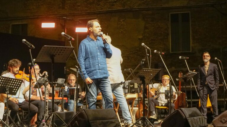 Centinaia di persone nel cuore di Foiano della Chiana per un concerto magico dell’Orchestra Multietnica di Arezzo con Neri Marcorè
