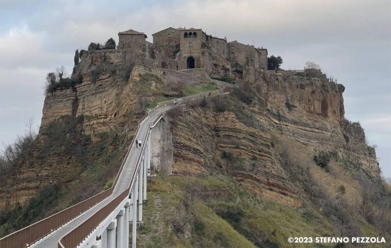 Una delle caratteristiche più affascinanti di Civita è la sua posizione isolata. Collegata al resto del mondo da un lungo ponte pedonale, la cittadina sembra sospesa tra cielo e terra. Tuttavia, la sua storia è segnata da un dramma: il lento ma inesorabile processo di erosione del tufo ha portato a crolli e perdite di terreno, guadagnandole il soprannome di “La Città che Muore”. Nonostante questo, gli abitanti e gli amanti della storia lottano per preservare questo tesoro unico.