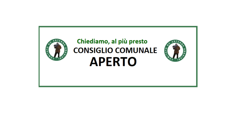 Il Comitato No Antenna di Anghiari esprime la propria preoccupazione per la totale mancanza di informazioni da parte dell’amministrazione comunale e richiede con sempre maggior forza che il Sindaco convochi urgentemente un consiglio comunale aperto per affrontare a viso aperto la cittadinanza, così come molti altri primi cittadini hanno fatto in molti comuni d’Italia.