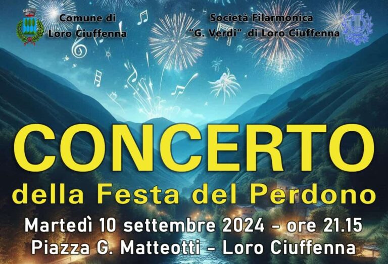 Martedì 10 settembre, alle ore 21.15, in Piazza G. Matteotti a Loro Ciuffenna, si terrà il tradizionale concerto di chiusura della Festa del Perdono, con la partecipazione della Filarmonica “G. Verdi” di Loro Ciuffenna diretta dal Maestro Orio Odori.