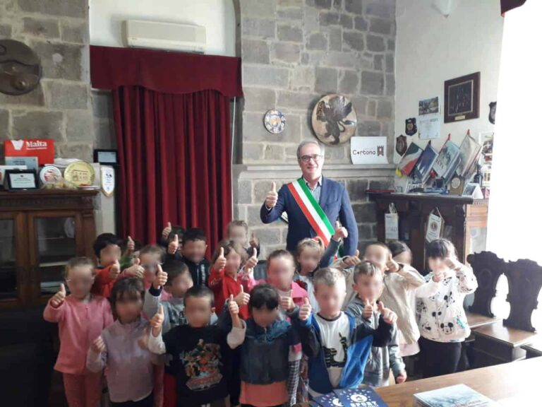 Una visita speciale questa mattina al palazzo comunale di Cortona, i bambini della scuola dell’infanzia di Fratta sono stati accolti dal sindaco Luciano Meoni. Si tratta di un nuovo incontro organizzato dalle scuole per promuovere l’educazione civica e i valori della democrazia fin da piccoli.