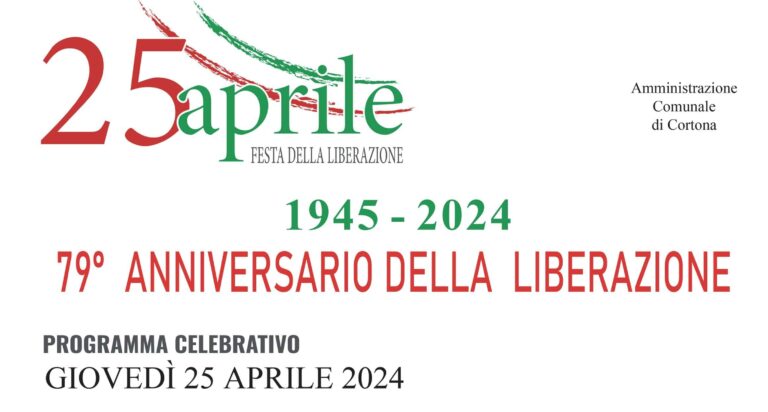 Giovedì 25 aprile 2024 le celebrazione della Festa di Liberazione a Cortona inizieranno alle ore 9 con la funzione religiosa nella chiesa di San Domenico, alle 10 è fissato il ritrovo di cittadini, autorità ed associazioni in piazza della Repubblica a cui segue la deposizione di corone d’alloro alle lapidi delle vittime dei nazifascisti.