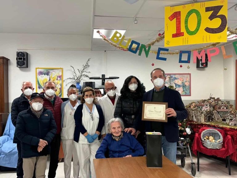 Ha compiuto 103 anni ed ha festeggiato insieme agli ospiti della Rsa di Camucia, Vera Sinicatti ha tagliato un traguardo importante. La signora Vera vive nella residenza sanitaria comunale «Camilla Sernini» ed è qui che ieri il sindaco Luciano Meoni, accompagnato dall’assessore alle Politiche sociali, Valeria Di Berardino, le ha consegnato una targa celebrativa.