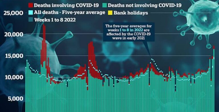 I parlamentari hanno chiesto un’indagine urgente sull’impennata dei tassi di mortalità in Gran Bretagna: circa 17.381 decessi sono stati registrati in Inghilterra e Galles nei sette giorni fino al 13 gennaio 2023, ovvero 2.837 decessi sopra la media per il periodo dell’anno.