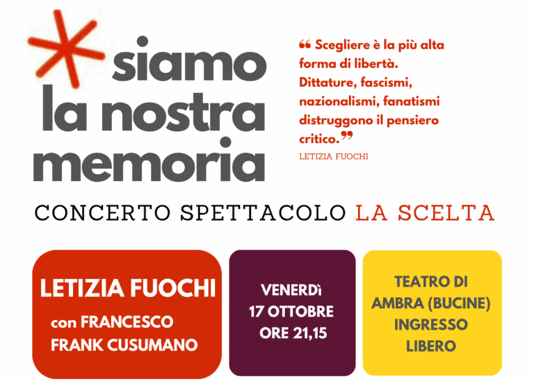 ⏰ 17 ottobre, venerdì ore 21,15, Teatro di Ambra (Bucine), ingresso libero