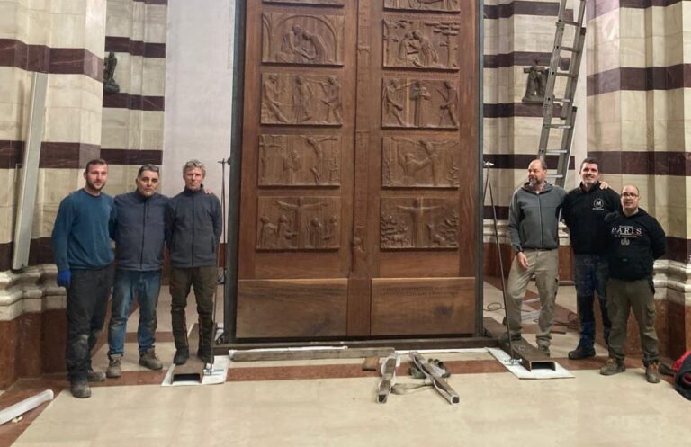 “Non è stato semplice trasportare questa grande opera d’arte da la Verna a Grosseto – racconta don Pier Mosetti, che ha curato l’operazione – Dobbiamo dire un grande grazie alla comunità francescana del santuario, che con gioia ha accettato la nostra richiesta, e dobbiamo ringraziare di cuore la ditta Bronzi Nuova edilizia, che ha messo a disposizione mezzi e operai sia per il trasporto, che per l’allestimento della stessa porta in cattedrale”.