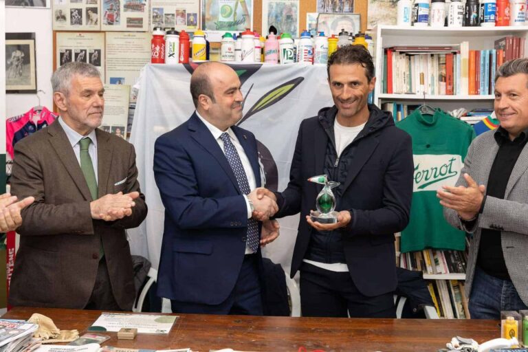 “Quest’anno, in occasione delle celebrazioni del 30esimo della nascita della nostra Associazione, abbiamo voluto omaggiare un uomo di sport che ha una grande passione per l’olio evo e che attraverso il suo lavoro promuove la cultura dell’olio non solo tra i professionisti ma anche tra gli appassionati di ciclismo, soprattutto giovani. L’olio evo è il primo nutraceutico della Storia ed è un alleato prezioso della nostra salute. Come sappiamo è alla base della Dieta Mediterranea, la migliore dieta al mondo e Patrimonio Unesco e di una alimentazione corretta indispensabile anche a chi fa sport – ha dichiarato Michele Sonnessa Presidente delle Città dell’Olio – Come Città dell’Olio crediamo che lo sport sia portatore di valori importanti e siamo convinti che la bicicletta in particolare sia il simbolo di quel turismo lento e sostenibile che da sempre promuoviamo quando parliamo di turismo dell’olio che nasce dal cuore delle nostre Comunità dell’Olio. Per questa ragione da qui, da Castiglion Fiorentino vogliamo lanciare un nuovo ed ambizioso progetto che realizzeremo nel 2025: il GirOlio d’Italia, ovvero un giro d’Italia in bicicletta che avrà tra le sue tappe le olivete e le Città dell’Olio italiane con itinerari per amatori immersi nel paesaggio olivicolo”.