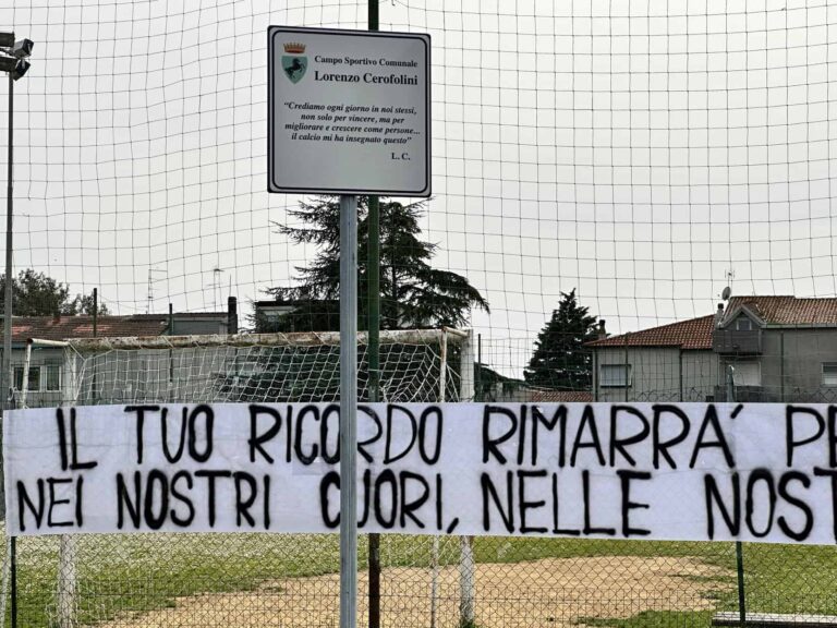 “Una giornata importante nel ricordo di Lorenzo. Da oggi il campetto dove è cresciuto porterà il suo nome accompagnato da una frase molto significativa che ripeteva spesso al ritorno dagli allenamenti.